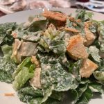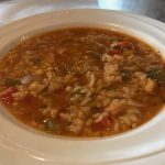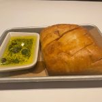 写真は、サワードーのパン(フリー)、アイス・シェルフィッシュ・プラッター(S)、プラッターの各種ソース、アヒツナ・ターター、サンプラー(4oz フィレステーキと3oz ロブスターテール:ハッピーアワーメニュー)、トマトとブラータチーズのサラダ、メリーランドクラブビスク、ブルーチーズのポテトチップ