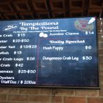 The pictures are: Oysters on The Half Shell, King Crab, Clams On The Half Shell, Grilled Perch, and Fried Oysters