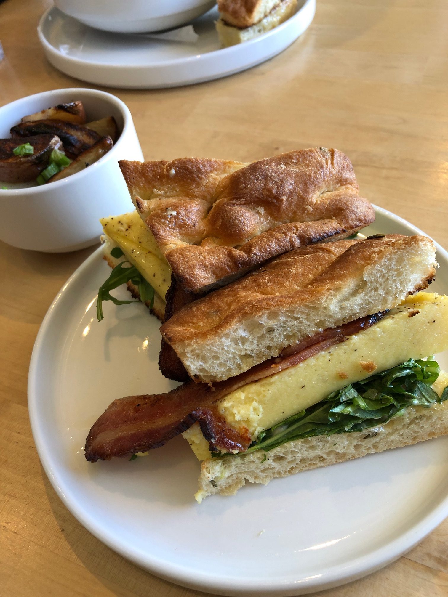 注文は入口のカウンターにて、番号札をもらって好きな席に座るスタイルです。朝食〜ランチの営業で、週末はブランチメニューもあります。