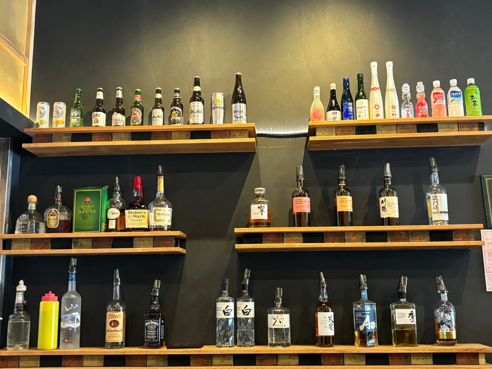 ウイスキーの種類も豊富で、串焼きもあるので夜にお酒を楽しむのにはぴったりかな。