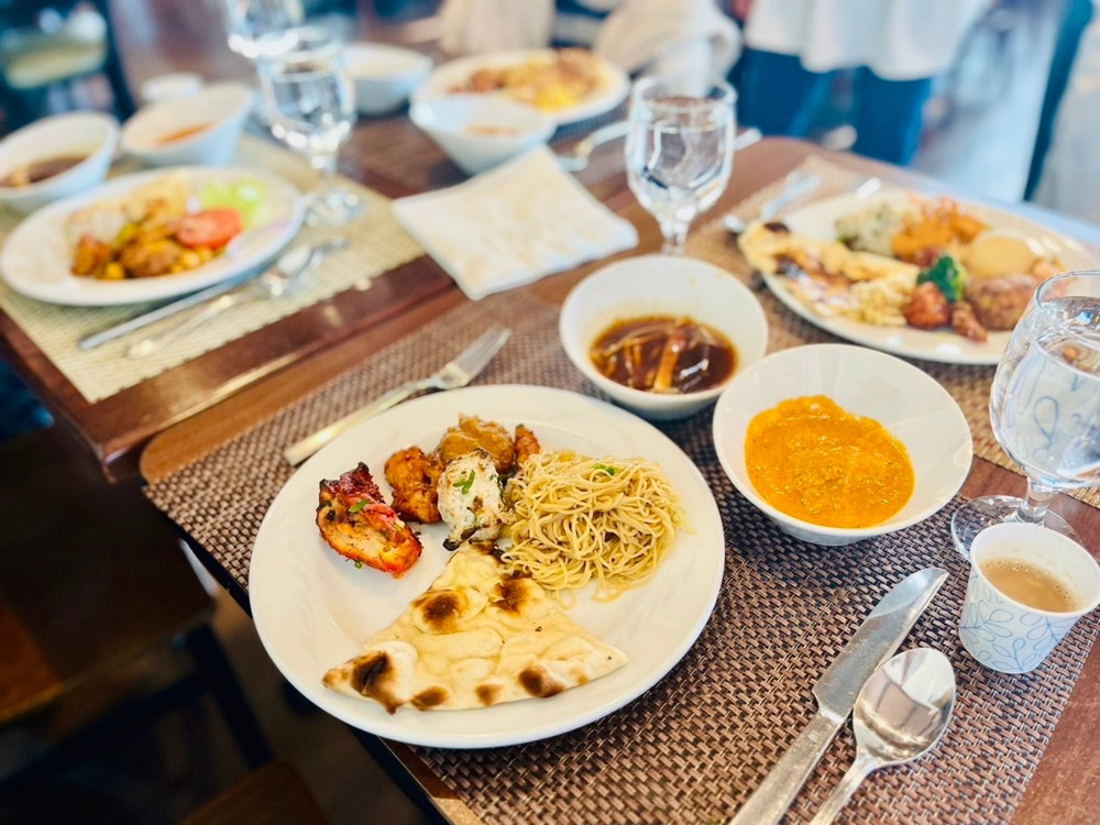 サラダ、揚げ物、スープ、カレー、焼飯、デザート、チャイまで味わうことができます!