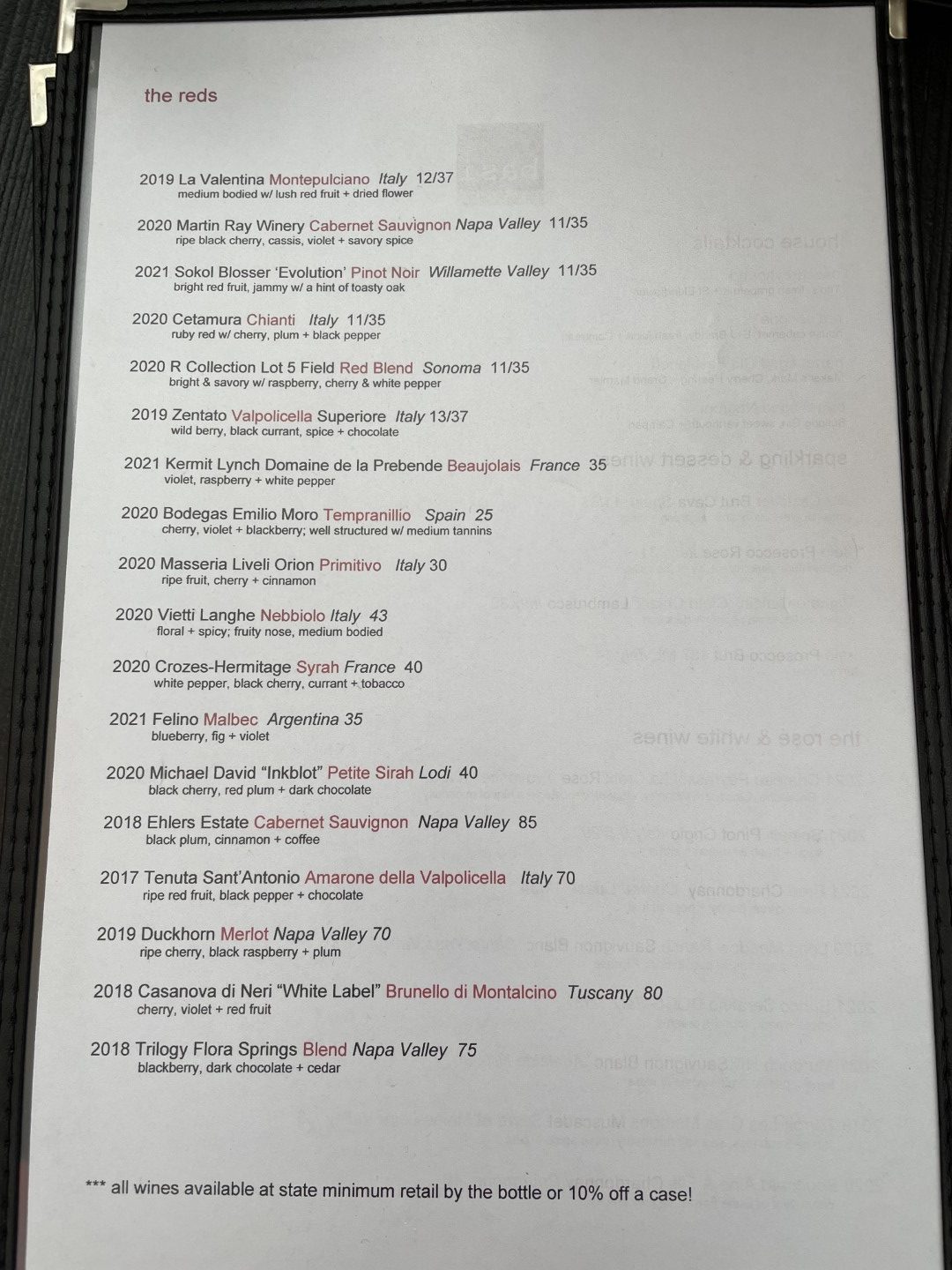 ワインメニューも豊富で、料理ともペアリングも可能です。