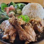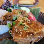 フィリピンの伝統料理で鶏肉を醤油とお酢、砂糖、ローリエなどで煮込んだもののようです。お肉はホロホロ、味付けはどこか懐かしさすら感じます。