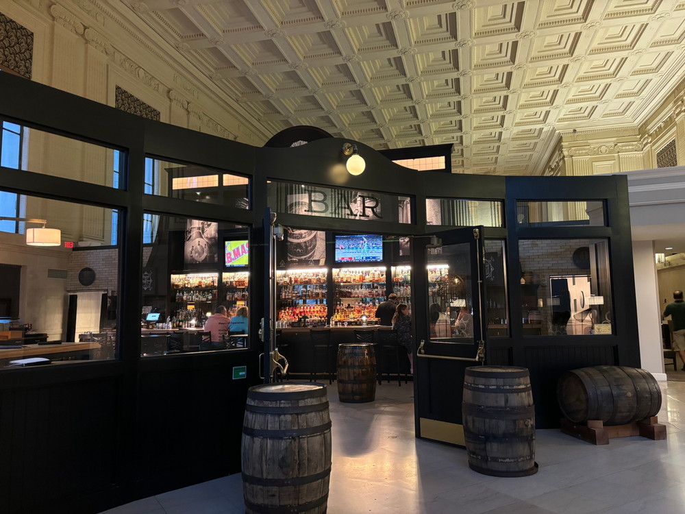 元銀行だったビルがリパーパスされてホテルになっています。その1階にこのバーボンバーがあります。