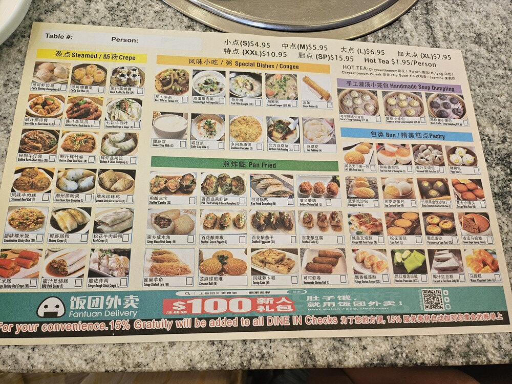 飲茶の注文スタイルは、料理の写真が載った紙にチェックをつけて渡す方式なので、初めてでもわかりやすく、見た目で選べるのも嬉しいポイントです。