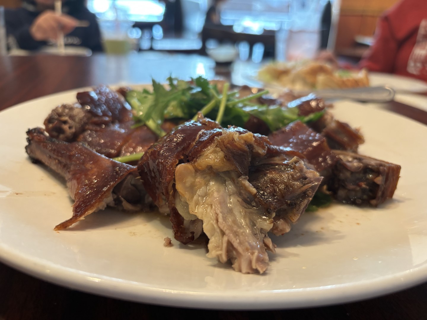 ローストダック(お肉付きの北京ダック)皮がカリカリで脂身がとっても良い味ですよ。