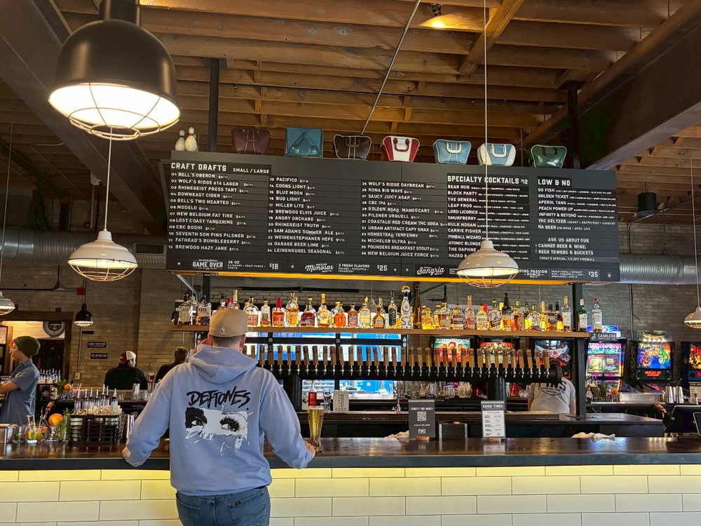 ダックピンボウリングやピンボール、卓球などのゲームを楽しみながら、クラフトビールやカクテルを堪能できます。