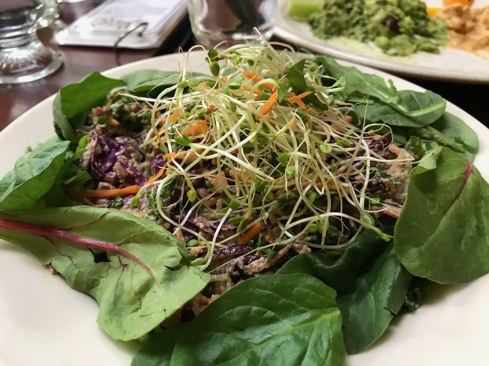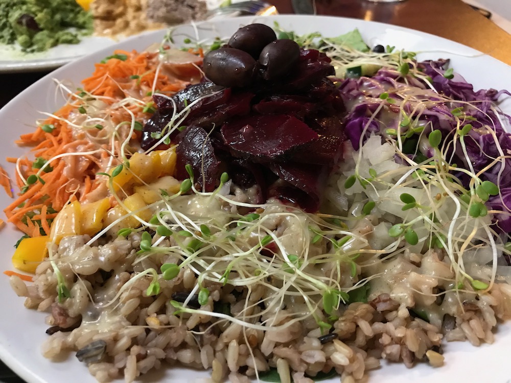 ヴィーガン(菜食)、グルテンフリー、GMOフリー、オーガニック、地産地消、フィルターを通してお水で調理するお店。なんだかちょっと小難しそうに聞こえるかも知れません。とても豊富なメニューで、あれもこれも試したくなります。にカジュアルな雰囲気のレストラン。食後の体感は、体がクリーンに、軽くなる感じがします。