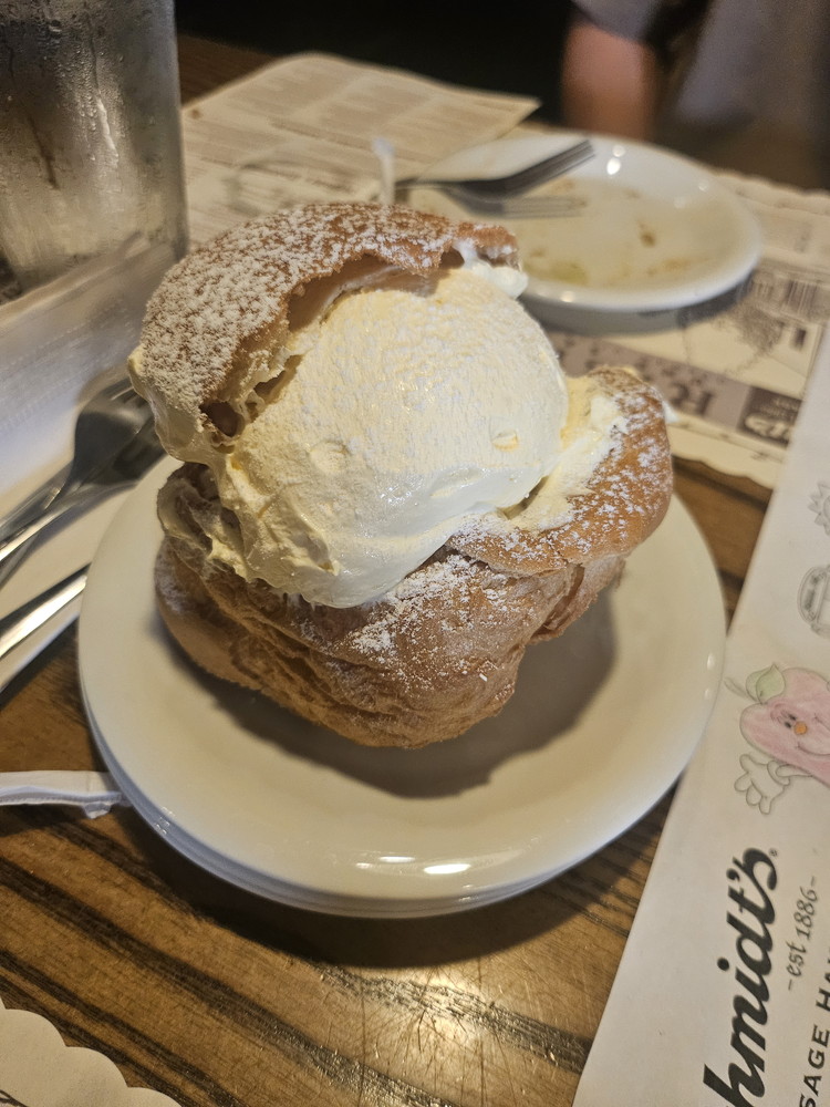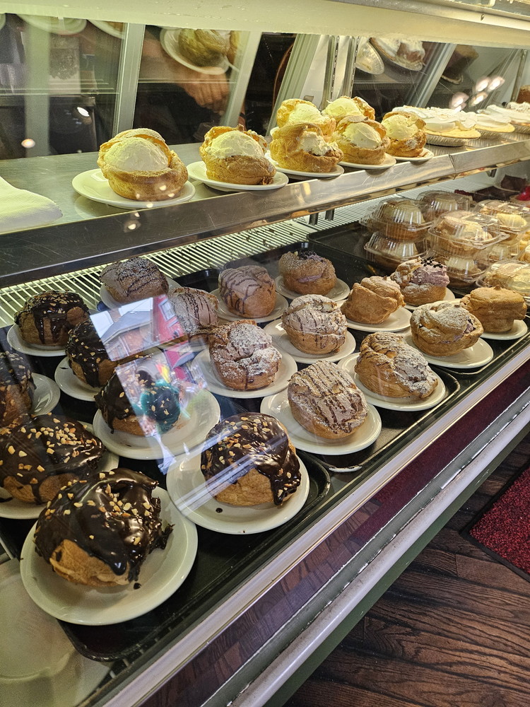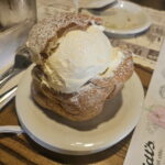 名物のクリームパフは甘さ控えめで軽い口当たりですが、サイズがとても大きいので、何人かでシェアするのがおすすめです。