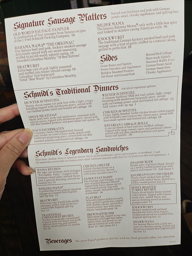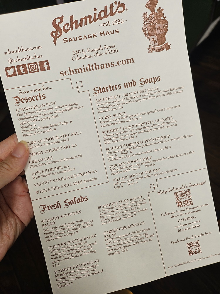 Schmidt’s Sausage Haus und Restaurant は、コロンバスのジャーマン・ヴィレッジにある老舗ドイツ料理店です。