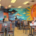 入って右のカウンターで食べ物を購入し、空いている席で自由に食事ができるスタイルです。