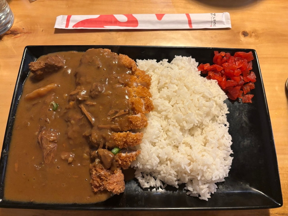 ラーメンは味わい深く、日本のラーメン!そのもの!しかも、アツアツで提供されます。カツカレーはすごいボリュームです。