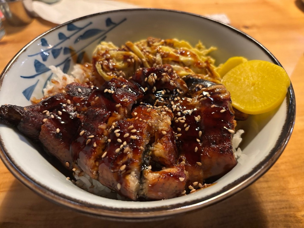 混ぜ麺は麺が多いのでトッピングを追加して2人で食べるといいかもしれません。鰻丼にそれほど期待していなかったのですが、予想以上に柔らかくて美味しかったです。