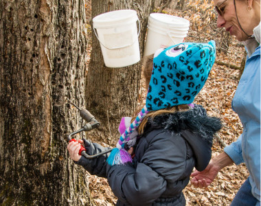 このイベントではトレイルに沿って歩き、メープルシロップの採取方法を学べます(ガイド付き)。トレイル終わりにはログキャビンの中でメープルシロップのサンプルが味わえます。