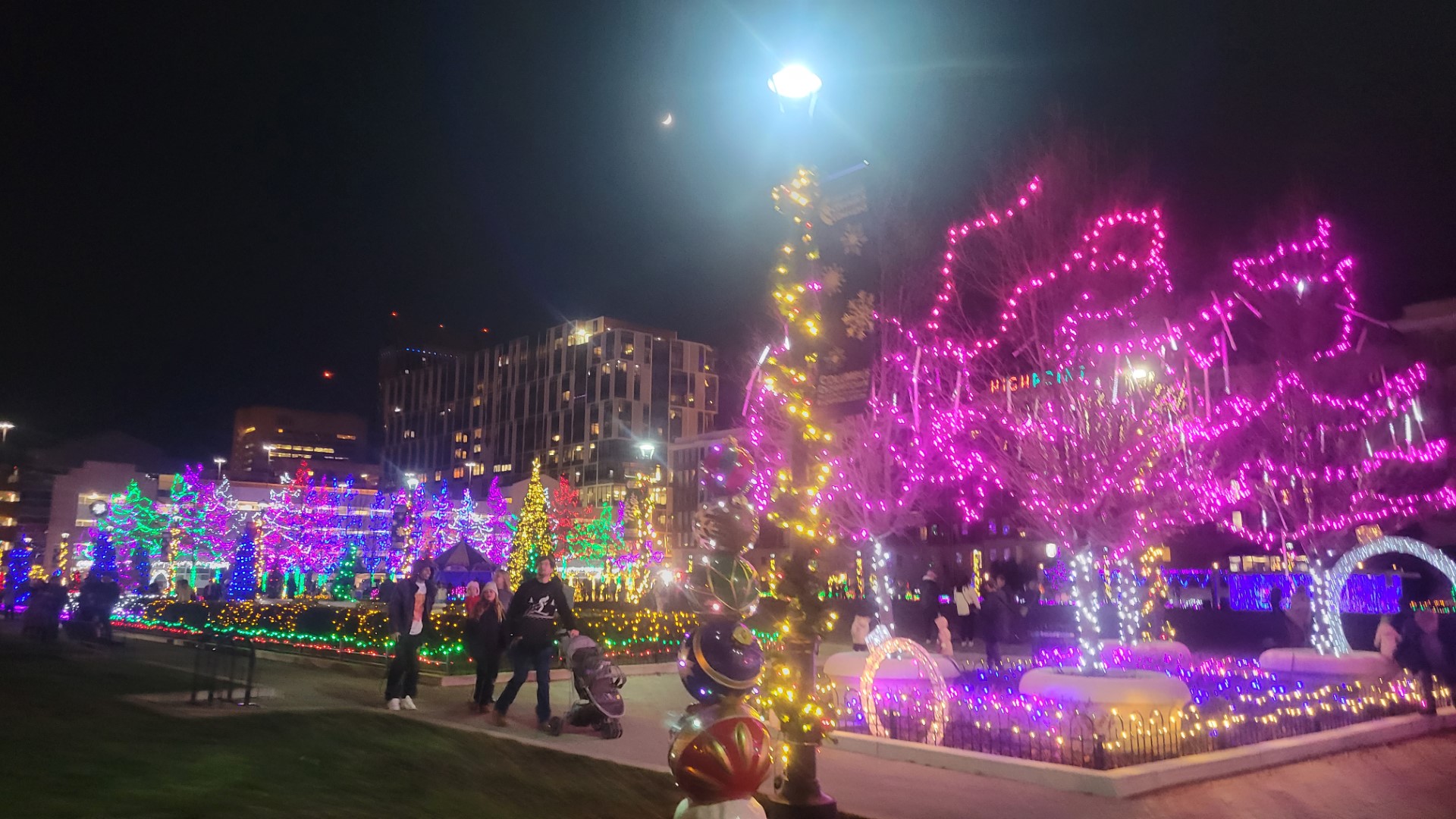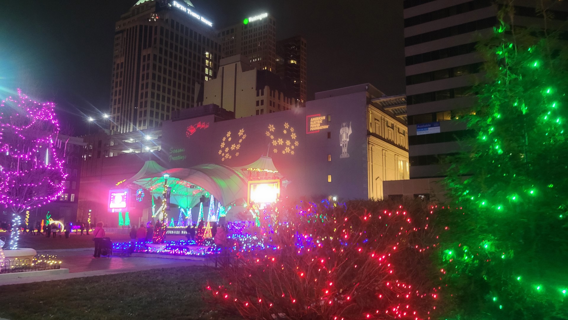 ➡️ ダウンタウンの3エリアをつなぐ、無料のホリデーライト散策イベント。Columbus CommonsからTown Streetを通ってScioto Mileまで、歩いてライトを楽しめます(50万灯以上)。