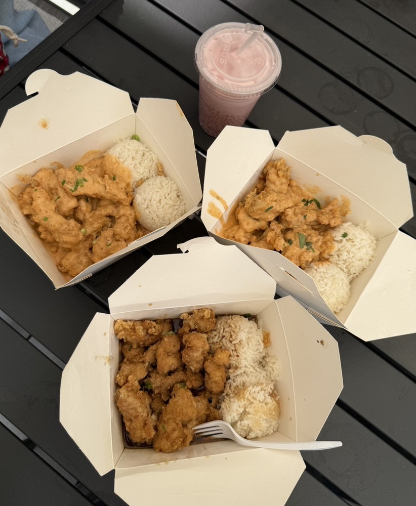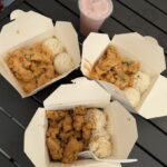 ローカルの人気フードトラックが並び、ランチにぴったり。